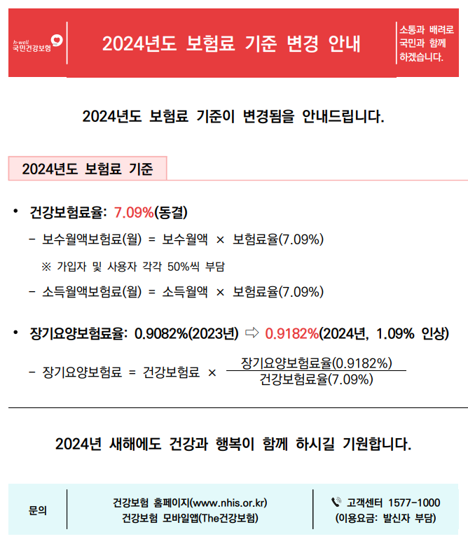 2024년도 보험료 기준 변경 안내 | 국민건강보험