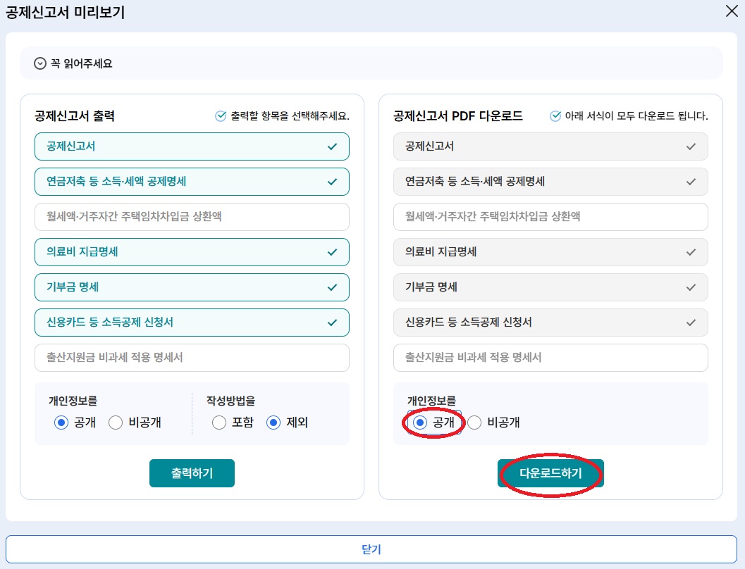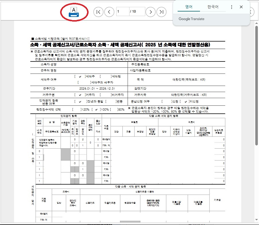 공제신고서 작성