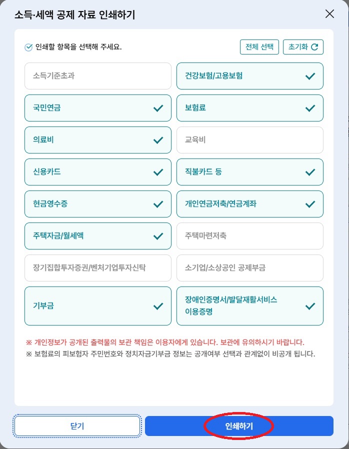 위 내용에 동의하고 간소화자료를 열람하겠습니다